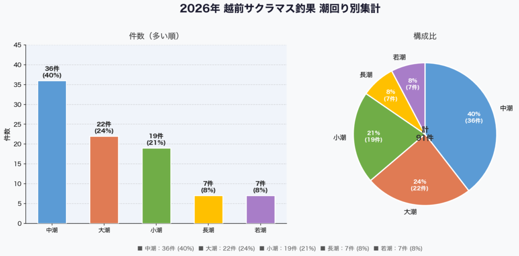 越前フィッシングさんの釣果情報をAIに喰わせてまとめてみました、九頭龍の釣果と潮回りの関係です。※4/17まで