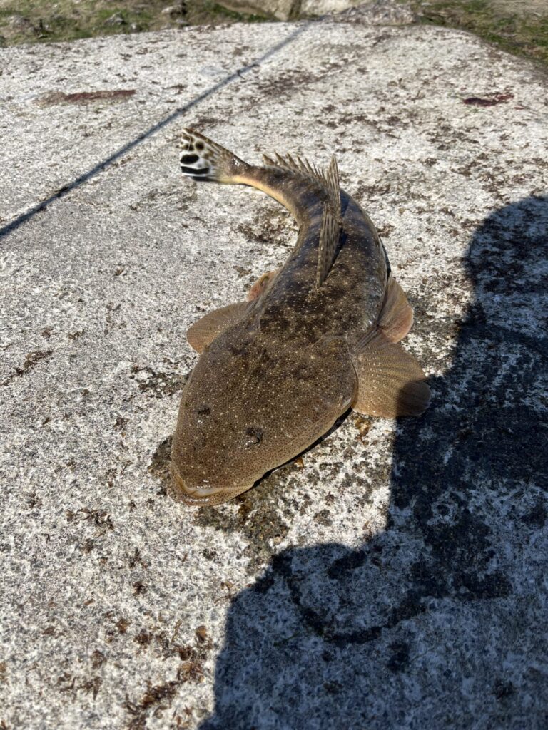 強風だったので、ドリフトで底をゴリゴリしながら流しているとマゴチが釣れました