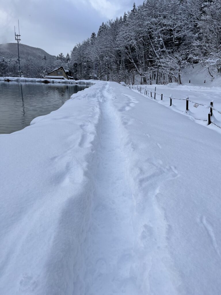 膝くらいまで積雪があります